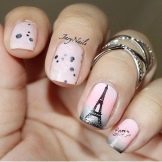 Fashionable modern nail art does not include the same coating of all nails, but the use of different techniques or colors. In this case, you can experiment on the fingers of your hand or combine techniques within the coverage of one nail plate. The theme of the design of the whole manicure as a whole will depend on the main drawing. If you chose gentle retro-bucket in the style and colors of Provence, then peas, hearts, the image of the Eiffel Tower will be combined with them. Colors will be slightly muffled: pink, delicate green, mint, milky and turquoise.