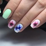 This type of manicure is so successful because of the effectiveness and ease of implementation. The drawing is as vivid and natural as when painting with a brush. At the same time, it is quite accurate and does not look as monotonous as stencil painting. A unique design is created by selecting the perfect combination of shade for the picture. Colors do not play a secondary role. The future decorative effect depends on their careful selection.