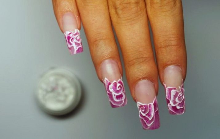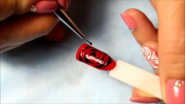 Roses can be painted with improvised materials, if there is no way to immediately get the right brush. The main thing here is desire and accuracy. Before performing patterns on the gel, manicure experts advise you to come up with a design in advance and work it out on a regular varnish.