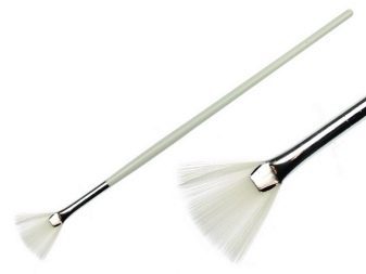 - Fan. A very wide and flat fan-shaped brush is needed to even out color transitions, design abstract or landscape images, and evenly distribute decor in the form of sparkles or powder.