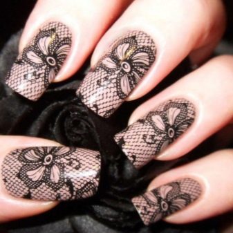 - Stencils greatly facilitate the work when creating a manicure. As a template, not only special purchased, but also made and improvised tools are suitable. For example, for geometric patterns, you can use a narrow masking tape, and for openwork drawing - a piece of lace or tulle.