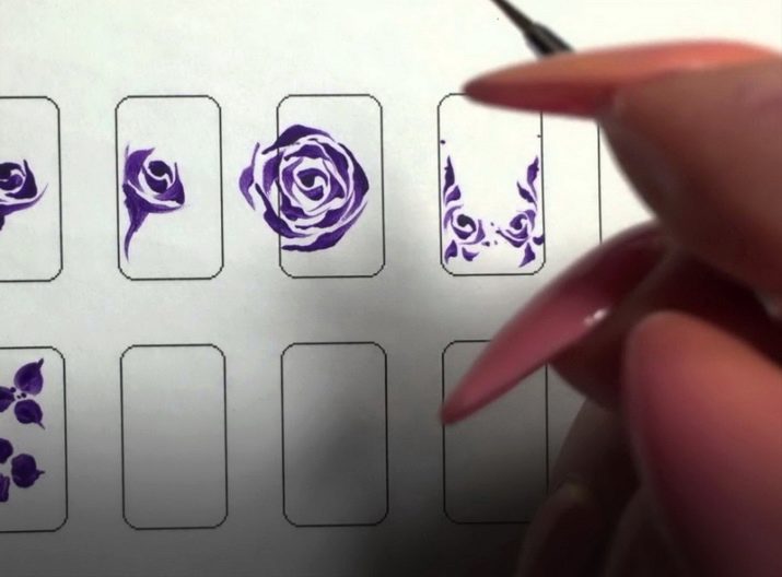 For beginners, in order to learn how to reproduce drawings with gel polish, you should improve your technique. It is not necessary to do this on false nails, spend money on them, it is enough to draw with a brush on paper. Drawing should be even and clear.