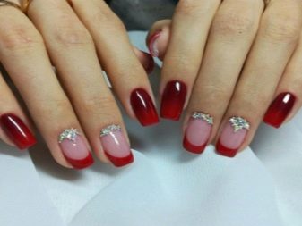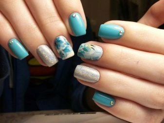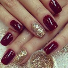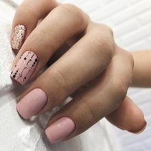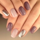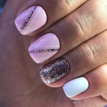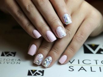 - With sparkles. Such a manicure is mainly used for ceremonial onions. Sequins give shine to nails, attract attention to the hands. You can use options of different sizes, colors. It is convenient to decorate with such a decor both the entire nail plate, and part of it. For example, you can make a French manicure, and decorate the smile area with sparkles. This design involves restraint in clothing. It is better to focus on 1-2 nails. Such decor will look stylish and festive.