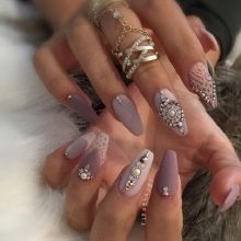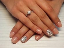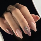 Now you can start decorating your fingers. You can glue rhinestones of different sizes at Lunula or designate a smile zone. There should not be many stones. It is better to focus only on a few fingers. Such a manicure will look stylish and fashionable. You can also apply various stickers, sparkles, make drawings.