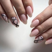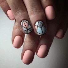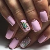 - Matte coating. Nails with a matte tone look very unusual.It gives color a special depth and expression. Even having done a plain manicure, you will be in the spotlight. Successfully you can combine matte and glossy surfaces on one nail.