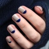 - Lunar manicure. It is also easy to do it yourself. This decoration of nails is popular today among young people and among older people. The hole can be highlighted with transparent shellac or apply different tones, both colorful and muted. You can use a different shape of the hole. For example, geometry looks stylish. Use the most unimaginable combination of tones to reveal their personality.