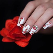 When decoration is completed, a top coat is applied to the surface of the nails and dried under a lamp. Qualitatively and correctly made manicure will serve for a long time.