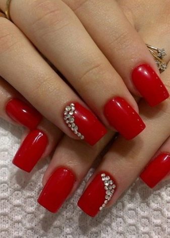 Do nail art should be based on the chosen clothing style. If a dress with sequins is chosen, then the nails in rhinestones will look inappropriate, in contrast to the plain options.