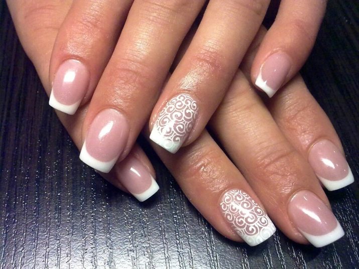 There are many variations of the embodiment of fashionable nail art. You can choose the right ideas for different life occasions. For example, to turn a simple French manicure into a “highlight” - to make the smile line not straight, but beveled. One finger can be distinguished by white abstract lines. This option is perfect for daily use.