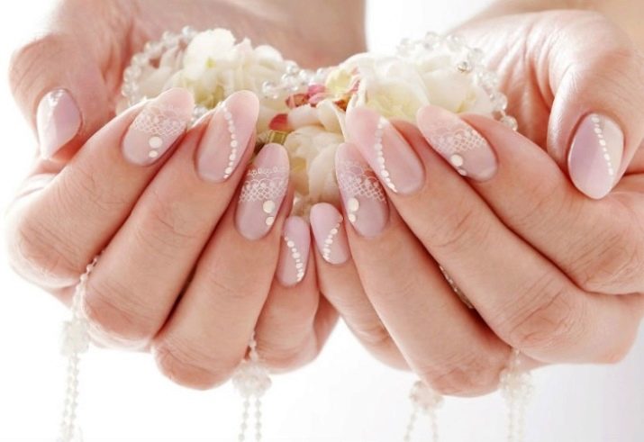 If you add florid patterns to the decor, a little rhinestone, you get a great wedding nail art.