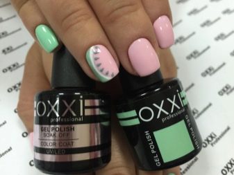 - Oxxi Professional. This brand produces quality products for stylish manicure and pedicure. A wide color range allows you to experiment with different tones. Many are attracted to gel varnishes with decor, which have a unique shimmer or sparkles.