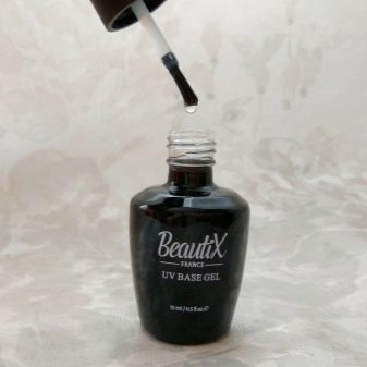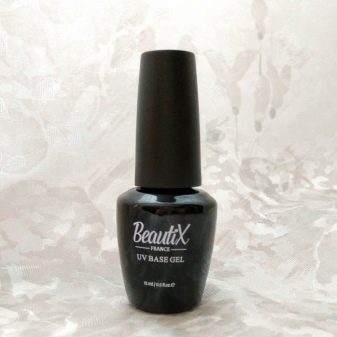 - UV base. This is a great option from the famous French company Beautix. This basic coating is characterized by a brush of excellent quality, because it is elastic and flat, which allows you to conveniently apply the coating on the nails.With this coating, gel polish will stay on the nails for more than two weeks, as the manufacturer claims. The base perfectly aligns the nail, characterized by a liquid consistency. It polymerizes quite quickly - if you use a UV lamp, it will take only a few minutes, but in a LED lamp it only takes half a minute. When using the base there is no discomfort. The volume of the composition is 15 ml. If we consider the disadvantages of this product, it is worth noting a rather high cost.