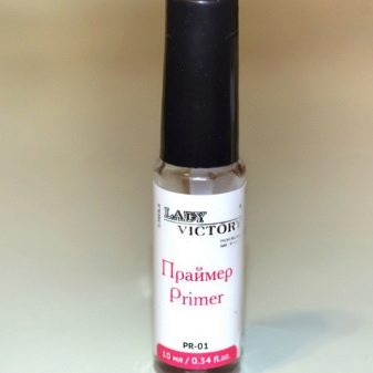 - Lady Victory. The company has developed a large line of tools for creating manicure. The primer perfectly disinfects, degreases the nails, and also guarantees a strong grip with gel polish. Since the manufacturer does not use acids in the manufacture of primers, they are safe to use.