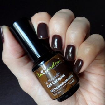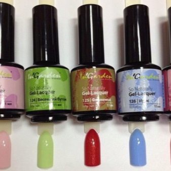 - In garden. The manufacturer offers gal-varnishes with a unique composition, because in their manufacture it uses polymers, silicone, resins and components that reliably protect the nails from external influences. In a short time, the nails become strong and restore the damaged structure. The coating holds firmly for up to one month, while not suffering from contact with water. Gel polish is applied evenly and quickly. The assortment features about 170 shades. Gel polish does not fit well without the use of a rubber base. Its price is from 485 rubles.