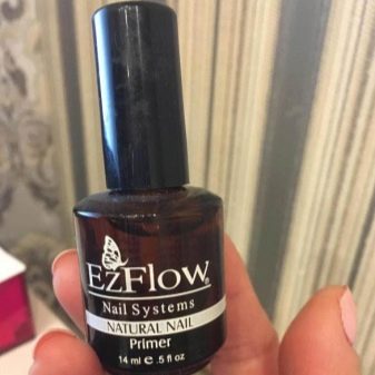 - Ezflow. This brand offers both acid-free and acidic primer solutions. Separately presented is a series that is designed specifically for gel or acrylic coatings, but you can also find universal products suitable for these two materials. All primers from the Ezflow brand are made without the use of flavors or dyes, and they also dry out in just a few seconds. They are often purchased to work with gel polish or shellac.
