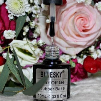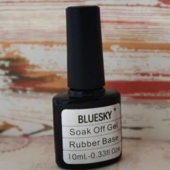 - Soak off gel Rubber base coat. This Bluesky-made Chinese product is one of the best mid-range gel polish basecoats. It perfectly aligns the fingernail, and only one coat is required. This base can be used for damaged and brittle plates. The volume of the bottle is only 10 ml, but its consumption is quite economical. This product is called by many the best in terms of quality and price. It is suitable for working with various gel polishes. The base is quite easy to apply on the nails due to the medium consistency. It does not spread, providing an even distribution. It hardens both in the UV lamp (2 minutes) and in the LED lamp (1 minute). Among the shortcomings, it is worth emphasizing a rather pungent smell, which many do not like.