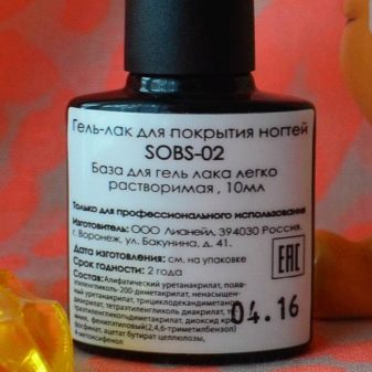 - SOBS-02. This is a wonderful easily soluble base from the Russian brand Lianail. It is quite easy and quick to work with it, since both soaking in a special liquid and sawing can be used to remove it. To get the maximum layer of protection and ensure reliable strengthening of the nails, it should be applied in two layers. The manufacturer offers it in a volume of 10 ml. By consistency, this remedy is of medium density. It can be used for polymerization in both UV lamps and LED devices. The advantages of the product include a fairly reasonable price. But unfortunately, he is unable to hide obvious defects on the marigolds, and also has a small volume, so the tool quickly ends.