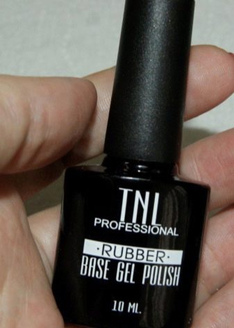 - Base Gel Polish Rubber. The famous Korean company TNL has created an excellent base for gel polish at an affordable cost and excellent quality. It perfectly conceals completely all irregularities on the nail plate and provides a firm grip with gel polish.In addition, this product helps strengthen marigolds and is completely safe. The consistency of the product is not very thick, so it is not only easy to apply, but also holds tightly to various decor options. For polymerization, you should use a UV lamp. Users noted that during the hardening process, it does not cause burning. The volume of the bottle is 10 ml.