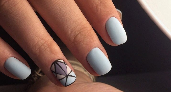 - Fashionable geometry looks doubly successful on a trendy matte finish. The tandem of two top nail art technicians will ensure success and attention to the owner of the manicure.