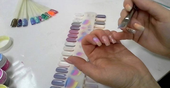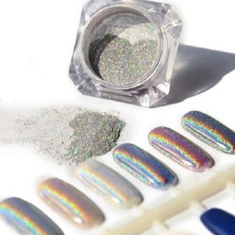 - Sequins - flat acrylic shiny jewelry for nails of various colors, from small ones, like dust, to large ones. Large ones can be laid out on the nail, and small ones can be used as powder.