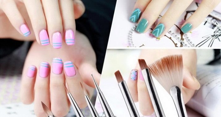 Some beautiful drawings on the nails can not be done with your own hands. The thing is that with the same brush you can not depict everything. Various brushes are practiced for some elements.