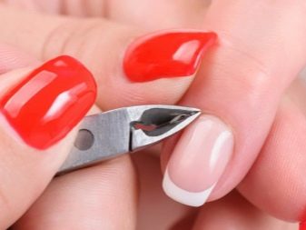 - Using manicure scissors or a cutter (tweezers), they cut off excess skin. In this case, movements must be made in the direction of the cut (in no case upwards). If possible, try to cut not parts, but a whole strip of skin. This will reduce the rejection at work, which is one of the reasons for the gel varnish to flow over the cuticle.