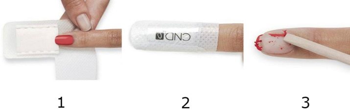 First of all, the fixing layer is cut off so that the remover copes better with its task. Next, a wrapper is taken and used according to the instructions attached to it. Then the wrapper is removed. If traces of gel polish remain, then they are removed with an orange stick.