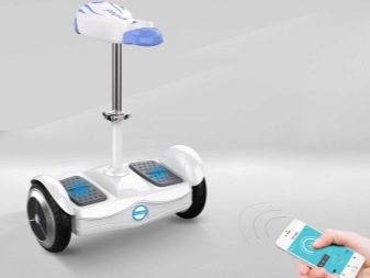 The sedentary hoverboard is endowed with innovative controls, information about the work of which is transmitted to the phone. You can track the movement, speed, battery status, use the backlight.