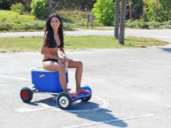 A hovercraft with a trolley looks like a go-kart - such a mini-electric car. It is safe and does not require special driving instruction, suitable for both adults and children. Disconnecting the cart does not require much time, just unfasten the fastening straps and release the device for the usual standing movement.