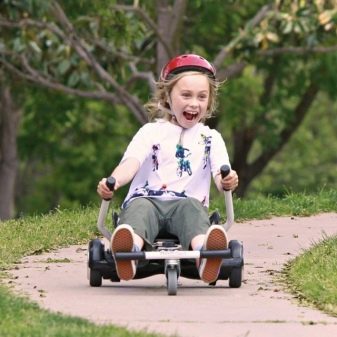 The trolley has many advantages: sitting on it, you do not need to maintain balance, it is safe, so you can accelerate to maximum speed and sharply slow down, take small curbs.