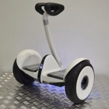 - Gyro scooter Xiaomi Ninebot mini. Convenient model with a handle, has a good charge permeability (up to 22 km). It has a top speed of 16 km / h. The device is equipped with two fairly powerful engines of 350 watts each. The time required to fully charge the battery is 4 hours. The hoverboard is equipped with a dashboard and the ability to remotely control from the phone using the Bluetooth system. It is also possible to install a special application on the smartphone through which you can monitor the technical condition of the device. The unique sensors that are installed in the “Haomi Nenobot Mini” read your personal data (weight, nature of movement, speed, etc.) and adjusts the device control individually for each rider.