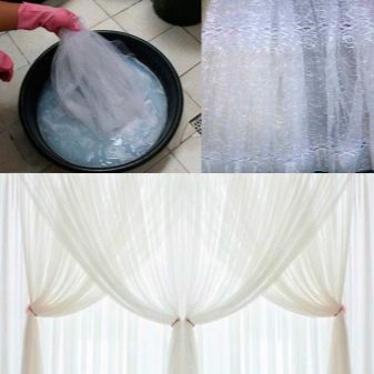You can use this method even after washing the tulle.Rinse it after washing in water with a rinse aid and a small amount of vinegar, hang it on a dryer so that the glass is excess water. And after that, immediately hang on the window. It is advisable to straighten it well. After 2-3 hours, the tulle looks ironed and fresh. A great way to save time. And it is no longer necessary to spend long hours on smoothing a multimeter tulle.
