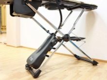 - Philips It has a rather large size: 120 centimeters in length and 45 centimeters in width.The surface for ironing is made of cotton fabric, foam, and also felted wool. You can adjust this model in height in 6 positions. There are removable coat hanger, as well as hangers for ironing. They can also be used to iron clothes in an upright position. Manufacturers have included special protection against children, so the baby will not be able to fold and decompose a similar product. It features a low weight, which is 8.8 kilograms. When folded, it takes up a minimum of space.