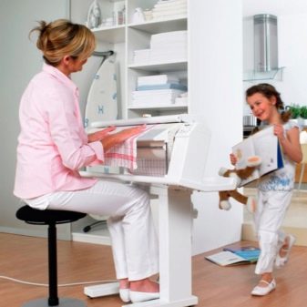 - Work on the ironing machine can be performed while sitting, which is very convenient for people who find it difficult to iron while standing.
