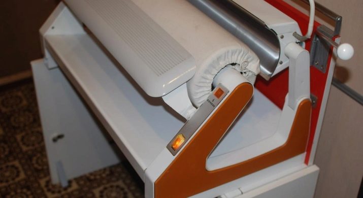 An ironing machine was invented in the first half of the last century. It was a machine, consisting of two rollers rotating in different directions, which were driven by a wheel with a handle. To work on such an aggregate, two people were required, one of whom guided the fabric between the rollers, and the second turned the wheel. The device was quite overall and not very convenient, in addition, there was no thermal effect on the material, so there was no question of a high level of smoothing.