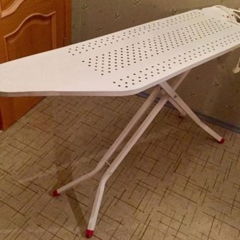 Outdoor varieties of ironing boards are more common than others. Their design is expanded until it acquires the form of a comfortable table of sufficient height (there are models of different heights - from 40, 50 and 60 cm to the floor). Most of these models are very easy to assemble, as many housewives say. If you are used to ironing your clothes while standing, then the floor construction will suit you best.
