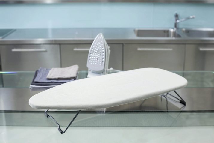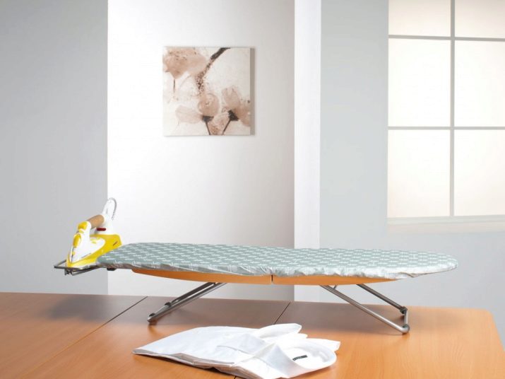 More compact and modest in all respects are modern desktop ironing boards. These models in most cases are equipped with very small legs. Desktop boards must be fixed on a table or other flat surface, and then used for their intended purpose.