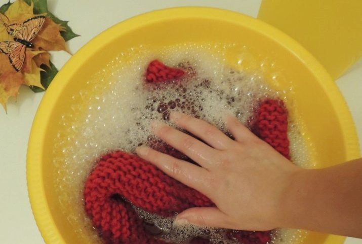 If the product is not knitted from natural wool or cotton (most often it is found in industrial production), for example, sweaters or scarves made of acrylic, there are some peculiarities in caring for it. Since this material is one hundred percent synthetic fibers, it is contaminated faster than natural. They erase it in water no hotter than 40 degrees. If you do this manually, in no case should you wash off stains that have formed on clothing. They should be gently rubbed with soap and stain remover and left for the time recommended in the instructions.After this time, you must carefully rinse the item and squeeze out excess water from it.