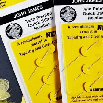 Tapestry embroidery needles differ from the rest in that they are blunt, with a rounded tip. Thickness gradually increases from the tip to the thread hole. The oval-shaped eyelet is convenient for free movement of the thread. For each type of embroidery, a needle is selected in accordance with the density of the fabric and the type of work performed. Thin needles with a small eye, even along almost the entire length, are used for embroidery in the Rococo style. Crosses in the style of “petit” are embroidered with short, thin needles.