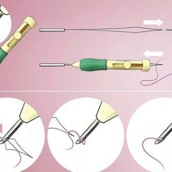 For craftswomen embroidering with two hands, a double-sided needle is suitable. It is used when the basis of the work is fixed on a special machine for embroidery, and both hands of the craftswoman are free. The eye of this needle is located in the middle, and it consists of two needles connected together. When using a double-sided needle, the speed increases.