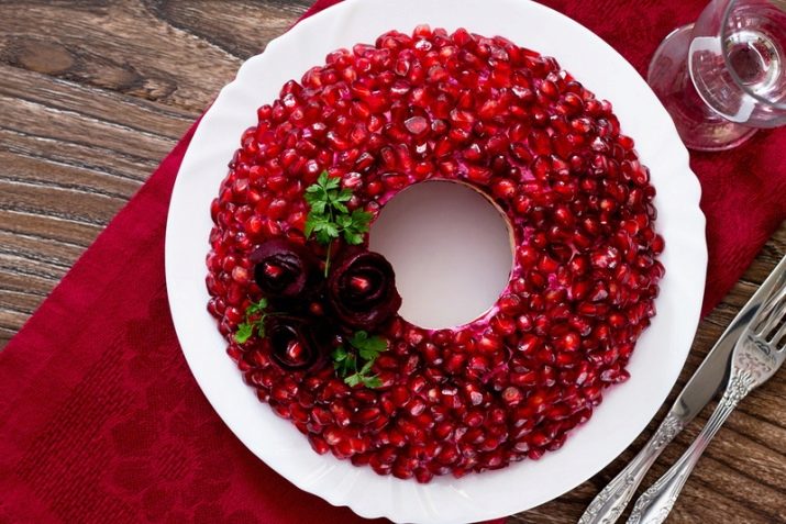 The menu includes salads decorated with pomegranate seeds, drinks based on pomegranate juice, alcoholic cocktails with its addition. For example, champagne with natural pomegranate juice. And for lovers of a high degree: vodka with orange liquor and red pomegranate juice.