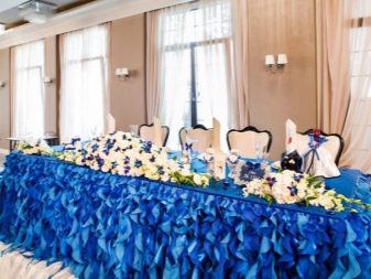 To emphasize the significance of the event, it is necessary to design the room in which the banquet will be held in blue tones. Jewelry can be turquoise or blue. Shades of blue should be found everywhere: from the scenery to the dishes. For beauty, you can put candles on the table or decorate the walls with balls.