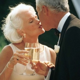 Do not forget to present the bride with flowers. Given the age of the marriage, the “bride” in him is a mature woman. As a rule, they are presented with bouquets of saturated colors, emphasizing the beauty and wisdom of the lady. It can be noble burgundy roses diluted with lighter colors.