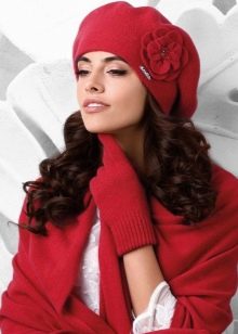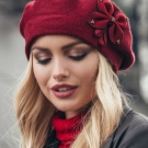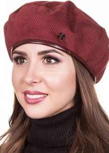 - Red. Burgundy and delicate cherry shades can become a spectacular accent throughout the bow. The uniqueness of the red berets is that they can be the only red thing in the bow, while being able to create a pleasant contrast with the rest of the clothes. To make the red beret look not too catchy, you can balance it in a bow with a burgundy shawl or handbag.