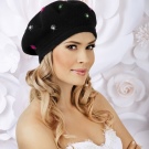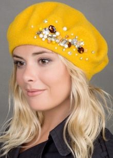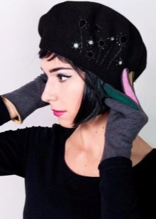 In a modern female bow, berets are actively decorated with additional decorative elements: rhinestones, brooches, embroidery, a veil and even semiprecious minerals.