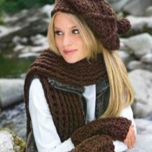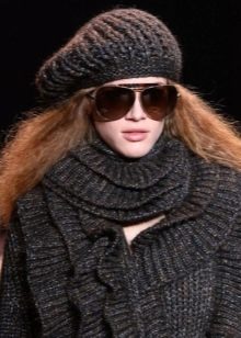- Knitted berets - The best choice for a warm winter look. Such models go well with down jackets, coats and some fur coats. They are distinguished by large sizes, free cut, and, as a rule, complemented by original patterns or floral stripes. Especially popular today are large-knit wool berets.