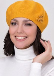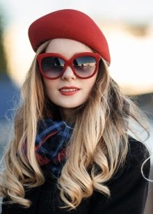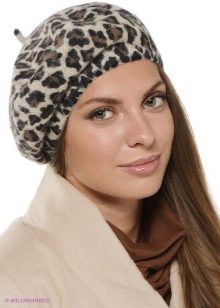- Complex colors. This may include models of berets of rarely used shades or models with prints. In order for such products to be in harmony with the bow, it is recommended to supplement them with accessories (glasses, a scarf or earrings) of the same color.