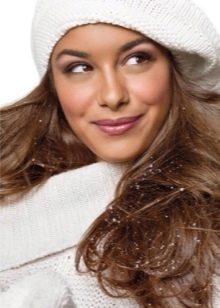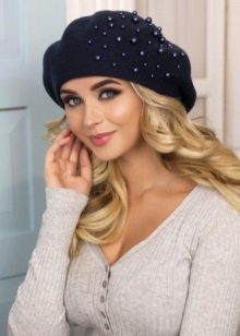 - Felt or tweed berets - A classic version that will simultaneously protect your head from the cold wind and frost and will be in harmony with other elements of clothing. Such products look concise, stylish and rich, and therefore it looks best in a sophisticated output bow.