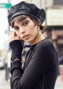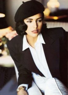 - Curls. The first rule - you can’t remove the hair completely under the beret, regardless of whether you have long strands or not. Curls, carefully pulled out from under the beret, will smooth facial features and bring more femininity and tenderness to the image. Berets with careless low tufts of hair or with a smoothly combed low tail will look especially interesting. A beret in an ensemble with a female hairstyle is considered a classic option - such a combination first became popular precisely in France and is still used by many sophisticated fashionistas.