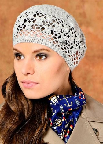 - Light, light summer dresses are best complemented with an openwork beret from thin yarn of the same light shades. Headgear can be both voluminous and fit snugly to the head.